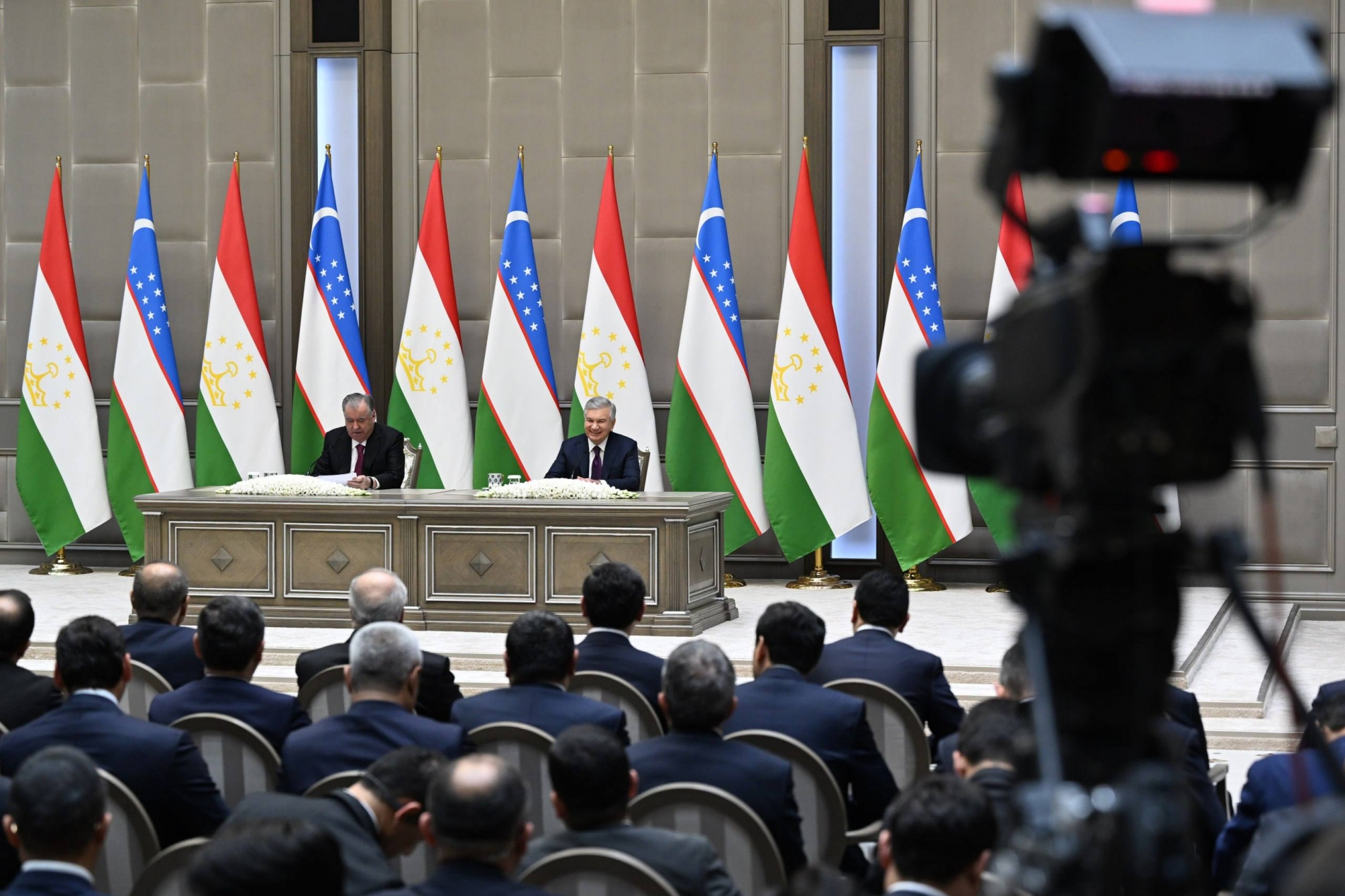 На встрече с представителями средств массовой информации, состоявшейся в резиденции «Куксарой», Президент Республики Узбекистан Шавкат Мирзиёев и Президент Республики Таджикистан Эмомали Рахмон поделились оценками итогов первого заседания Высшего межгосударственного совета.