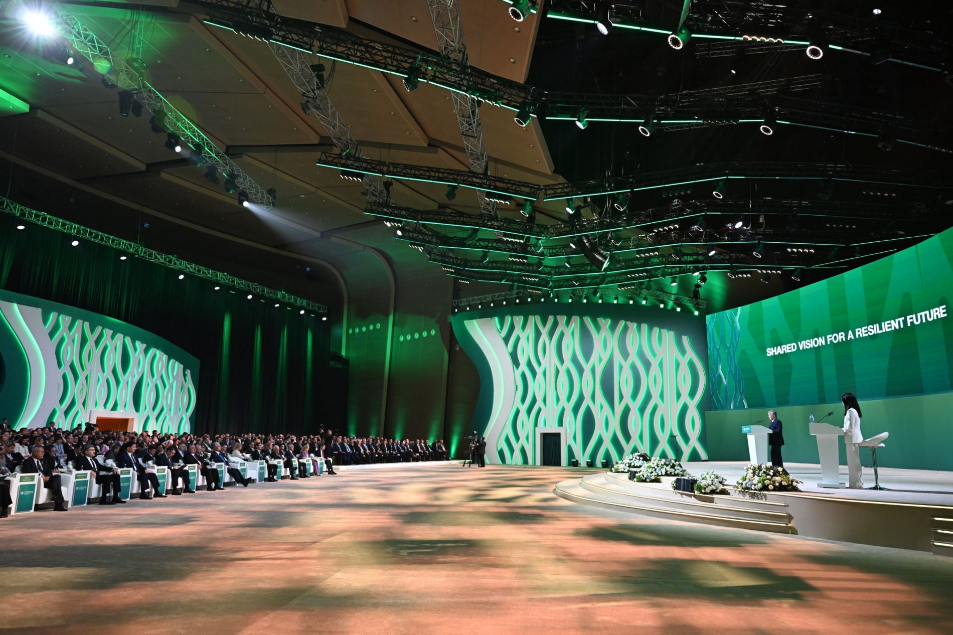 Давлатимиз раҳбари ўз нутқида Қозоғистон Республикаси Президенти Қасим-Жомарт Тоқаевни саммитнинг муваффақиятли ташкил этилгани билан самимий табриклаб, унинг экологик хавф-хатарларнинг ўзаро боғлиқлиги ва уларни биргаликда ҳал қилиш зарурлигини ўзида мужассам этган “Барқарор келажак учун умумий нигоҳ” деган бош ғоясини тўлиқ қўллаб-қувватлашини билдирди.
