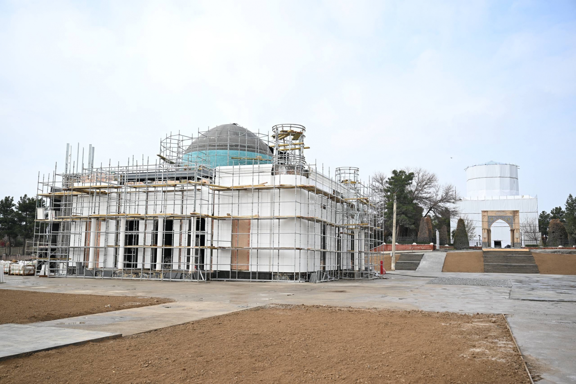 A mosque with a capacity of 250 people, a main entrance portal, a research center, a library, a museum, and a parking area are being built on the 26-hectare site.