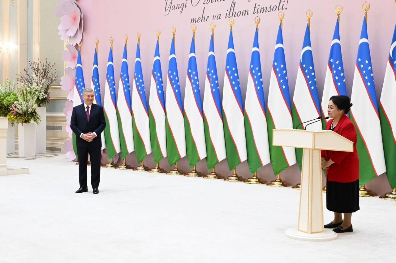 Biz sizlarning timsolingizda Uchinchi Renessans bunyodkori boʻlib maydonga chiqayotgan 22 millionlik yosh avlodni onalik mehri bilan tarbiyalab, voyaga yetkazgan buyuk bir kuchni koʻramiz.