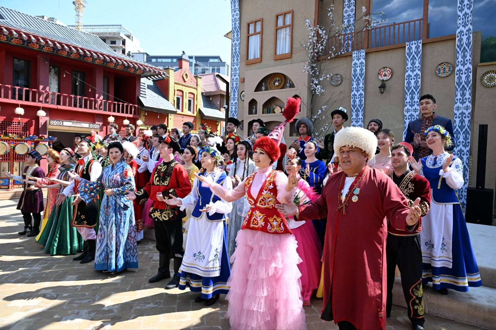 Bu yerda qozoq, qirg‘iz, turkman va boshqird o‘tovlari, koreys, belarus, ukrain, grek, olmon, dungan, polyak, yahudiy, gruzin, arman, tatar va qrim-tatar, uyg‘ur, turk, tojik, xitoy, rus hamda ozarbayjon xalqlarining ikki qavatdan iborat do‘stlik uylari joylashgan.