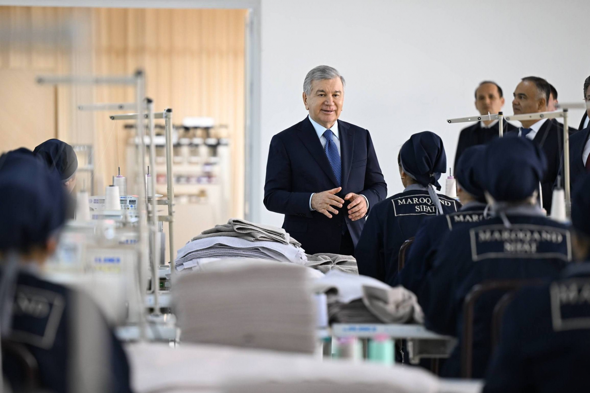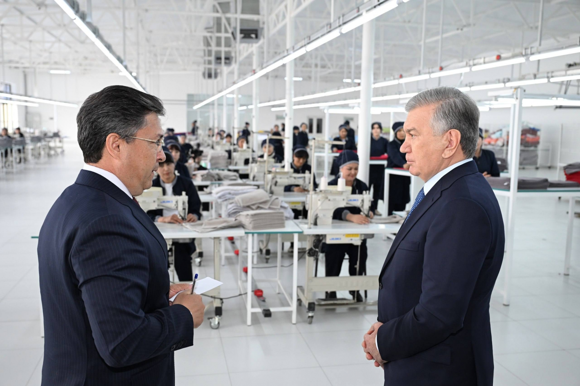 Президентимиз ишлаб чиқариш жараёнини кўздан кечирди ва тикув цехида меҳнат қилаётган ходимлар билан самимий суҳбат қурди.